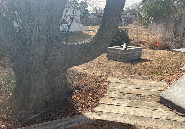 Two lots: 418 East Hamilton is 13,300 sq ft that had a house on it but it was moved leaving the foundation for a new 1,980 sq ft main level with a full basement, a big corner lot including a large 1,000 sq ft attached garage with an alley entrance. This lot is landscaped with an underground sprinkler system, a brick fire pit with natural gas hookup. There is a separate well for watering the yard (needs a pump). There are several mature trees on the lot. Village of Morrill has all the utilities on the lot.